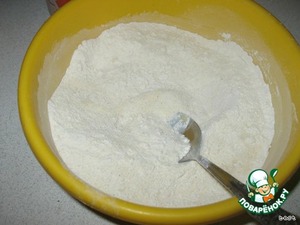 Хорошо перемешайте муку, манку, сахар и соду.