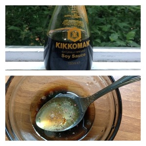 Для заправки: смешать масло, соевый соус и сок лимона. При желании кинуть щепотку соли и молотого перца. Перемешать. Заправить салат, и аккуратно перемешать его.