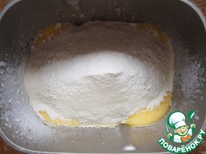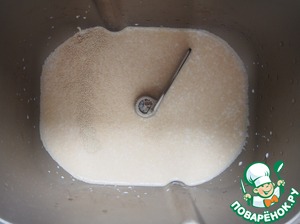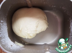 Замесить тесто и оставить в теплом месте для подъема, минут на 25-30. Я оставляю в хлебопечке.