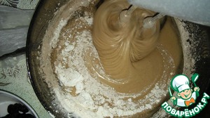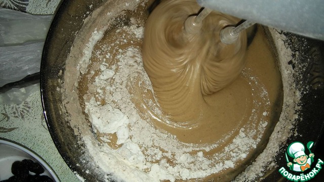 Чтобы не выпекать 2 коржа я выливаю половину теста в мультиварку. В оставшуюся часть теста вмешиваю какао-порошок до однородной консистенции. Затем доливаю шоколадное тесто в мультиварку, ничего не перемешивая (для мраморного эффекта). Устанавливаю программу "Выпечка" (50 мин.) -