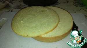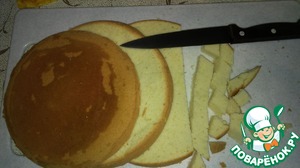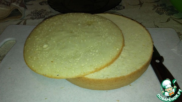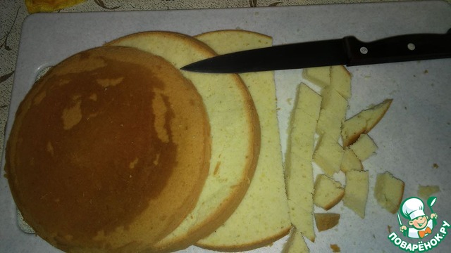 Срезаем с бисквита "крышку" 0,5-1 см. Далее она нам послужит дном торта.