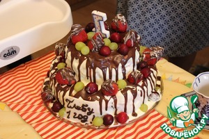 Украшаем драже, фруктами и пр. Ставим в холодильник. Подавать к столу лучше охлажденным.