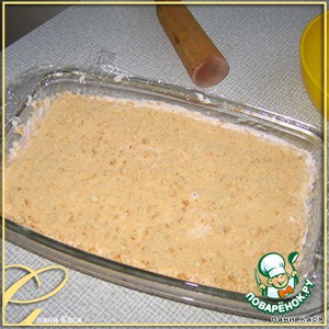 Форму (лучше прямоугольную) выстилаем пленкой.
