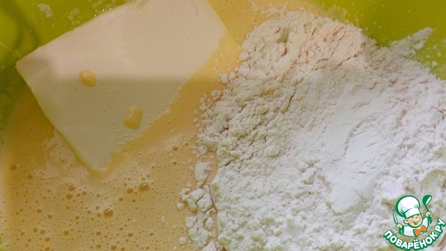 Добавить масло и муку.