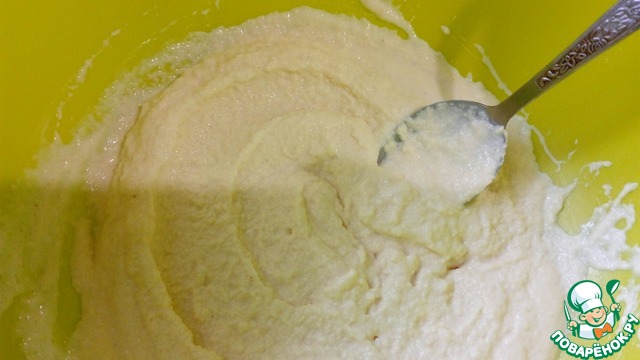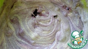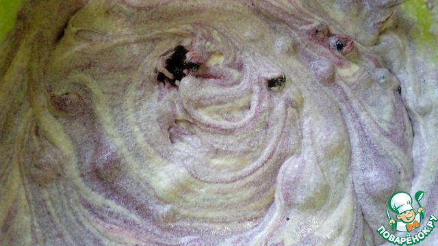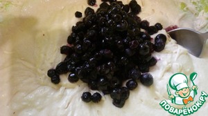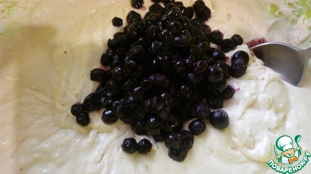 Взбить тесто миксером. Потом добавить чернику и перемешать ложкой.
