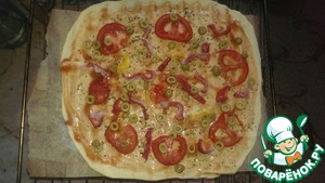 Почти настоящая итальянская пицца на тонком тесте с постными ингредиентами. Прекрасный способ разнообразить постное меню.