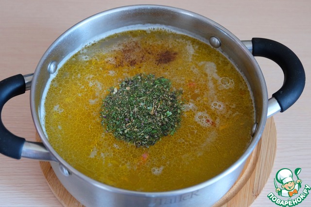 - Пряности (Пряная сушеная зелень (укроп, петрушка, базилик)) — 1/2 ч. л.