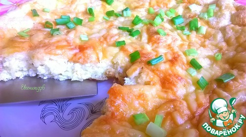 Смазать огнеупорную форму 20 г масла, распределить равномерно смесь 1,5-2 см высотой. Посыпать оставшимся сыром. Отправить в разогретую до 160 град. духовку на 25-35 минут.