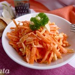 Это очень простой и самый быстрый салат-закуска, который я знаю. Его очень любят в моей семье. Острый, хрустящий и свежий. Я искала похожий по ингредиентам. Мне поисковик выдал триста с лишним рецептов. Я просмотрела первые пять страниц, такого не нашла. Дальше уже не было сил смотреть. Если есть такой же, оставляю на суд модераторов. Но очень надеюсь, что этот замечательный салат пригодится тем, кто с ним не знаком. Угощайтесь.