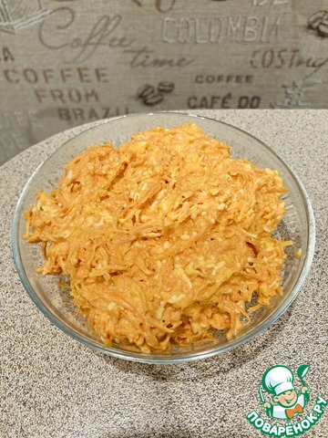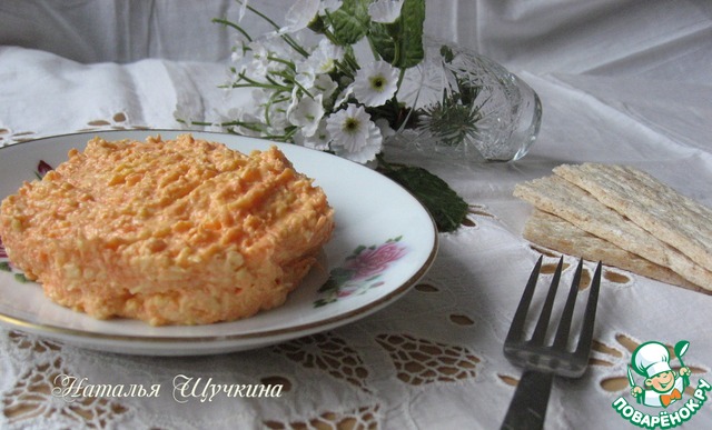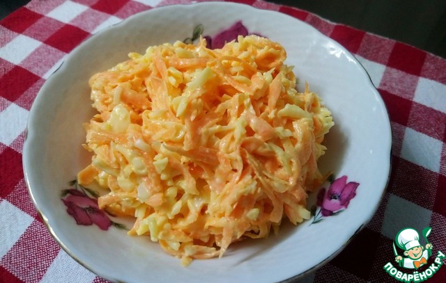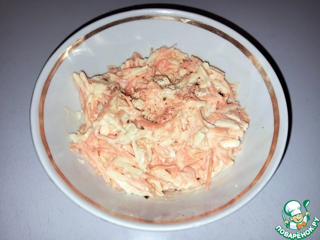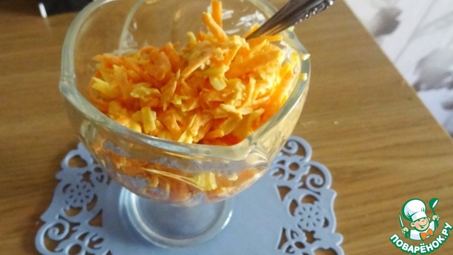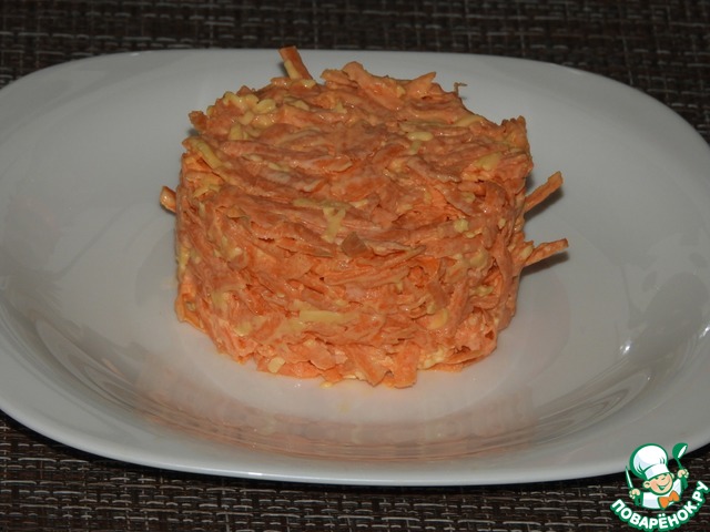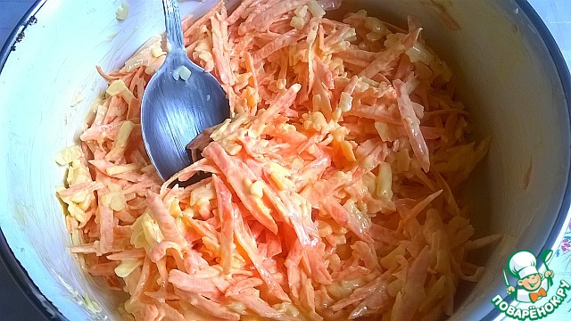 Сыр и морковь натереть на крупной тёрке, выдавить чеснок.