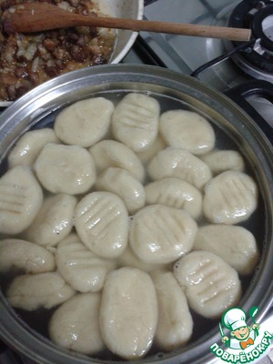 Тесто похоже на наши латвийские виртули (картофельные пончики), только мы их не варим, а обжариваем.