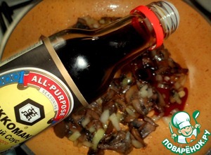 На этой стадии грибочки в соевом соусе, просто объедение. У меня грибы были заранее отваренные и замороженные.