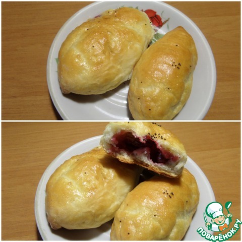 И в газовой духовке надо вниз ставить противень с водой, а то бумага из-за сиропа прилипает к пирожкам