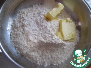 Перетереть муку с маслом. Добавить желток, воду, сахар и соль. Замесить тесто.