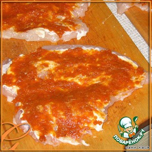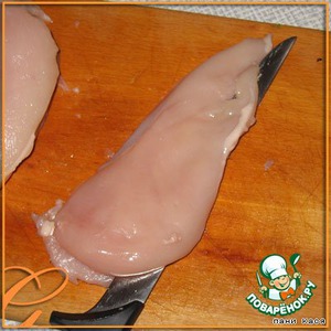Филейки разрезать вдоль, но не до конца, а так, чтобы можно было разложить "сердечком".