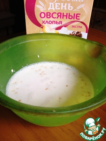Овсяные хлопья перемешать с ванильным сахаром и залить молоком.