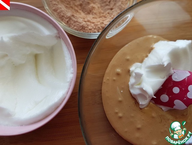 В несколько приемов, по очереди добавлять белки и сухую смесь в желтки. Аккуратно перемешать до однородности.