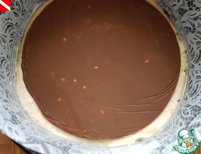 -Шоколадную вставку сделала так: просто порубила молочную плитку шоколада с орешками.