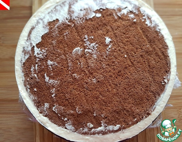 -У меня была большая форма 21 см в диаметре, поэтому коржа только два.