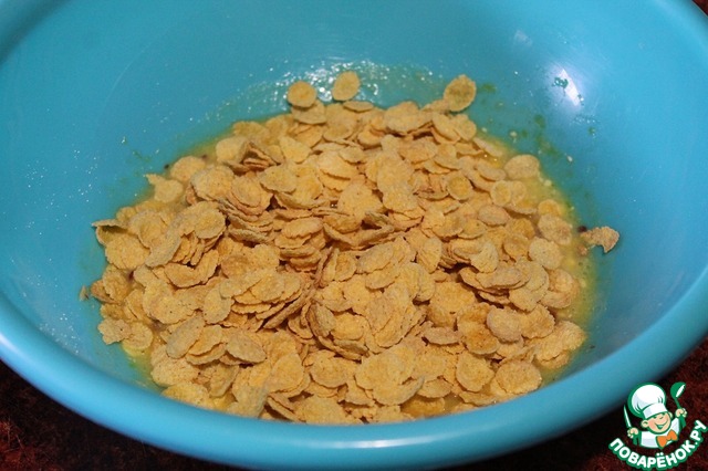 Добавляем половину кукурузных хлопьев (те, что готовые завтраки))).
