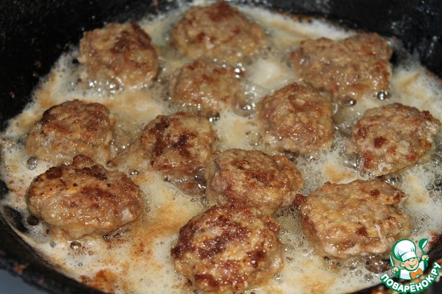 В сковороду наливаем растительное масло. Обжариваем фрикадельки. Убираем в чашку.