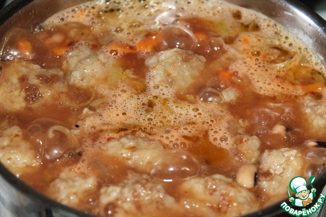 Рецепт «Фасоль с фрикадельками и овощами»: