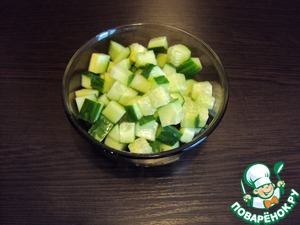 Картофель отварить в мундире. Пока варится картофель, огурец нарежем кубиками