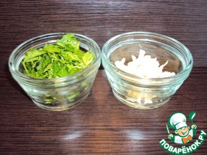 Чеснок и базилик измельчить (я к базилику добавила еще веточку петрушки).