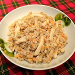 • Готовую крупу соединить с пассерованными кальмарами, овощами и перемешать. При необходимости добавить еще соевого соуса.