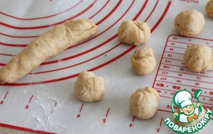 Тесто скатать в колбаску (или несколько), ножом нарезать порционно. Скатать в шарики.
