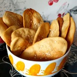 Каждый шарик раскатать очень тонко в форме овала. Чем более тонко раскатаете, тем более хрустящими получатся крекеры. При необходимости стол можно подпылить мукой, мне не понадобилось.