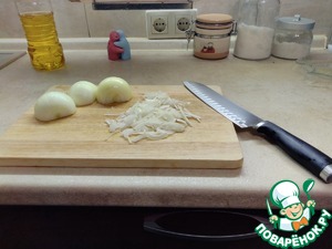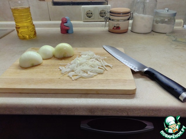 Почистите лук и порежьте его на тонкие, длинные "нити"