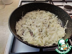 На сковородку налейте масло и поставьте на огонь греться. Когда сковорода нагреется, выложите в неё порезанные лук и чеснок. Помешивая, готовьте лук с чесноком минуты 2 на не очень сильном огне. Совет: перед обжаркой лук лучше слегка промять, чтобы разделить кусочки друг от друга. Так лук не будет слипаться во время готовки