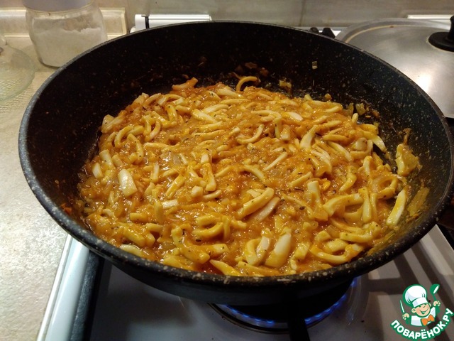Рецепт «Нежные кальмары в лёгком томатном соусе»: