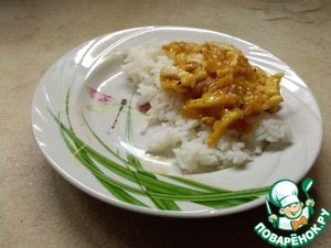 Остался последний шаг. Если соус получился для Вас слишком кислым, то Вы можете исправить это, постепенно добавляя сахар и перемешивая. Также добавьте по вкусу соль, перемешайте и дайте слегка остыть. Желательно подавать с гарниром. В моём случае я просто отварил рис. Приятного аппетита!