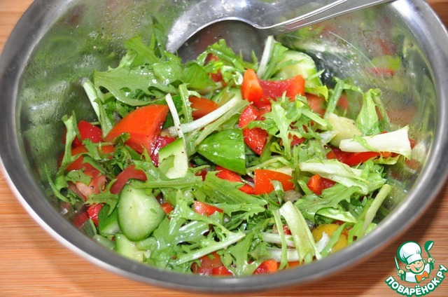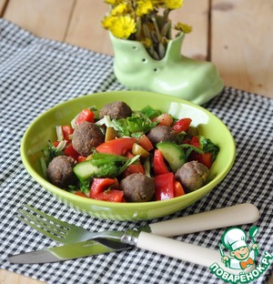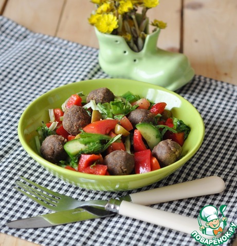 Перемешиваем. Соединяем салат с хлебными шариками.