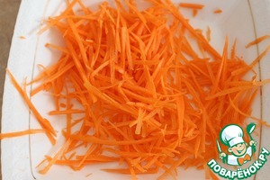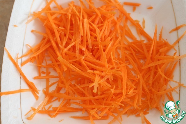 Морковь очистить и натереть на терке для корейской моркови (или на крупной терке).