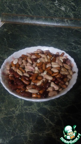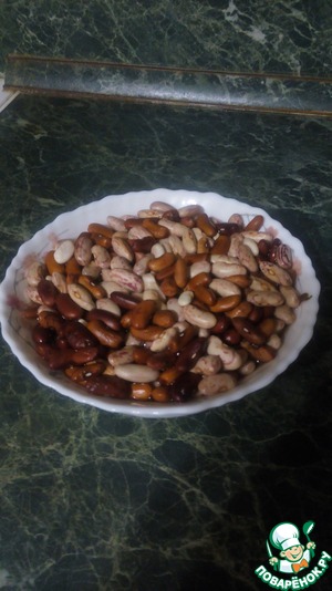 Выкладываем фасоль из банки (или берем отварную фасоль). Фасоль нужно брать красную в собственном соку. Можно взять и сваренную собственноручно красную фасоль. Для этого предварительно на ночь ее замочить в воде, а затем отварить около получаса до готовности.