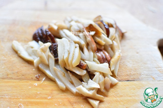 Выложить в сковороду, добавить соевый соус и масло для жарки;