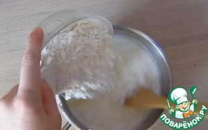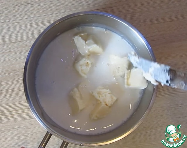 В кастрюле смешиваем молоко с водой, маслом, солью и сахаром. Ставим на слабый огонь.