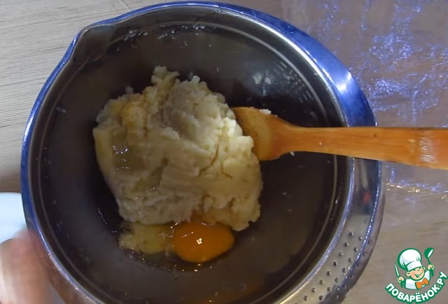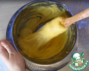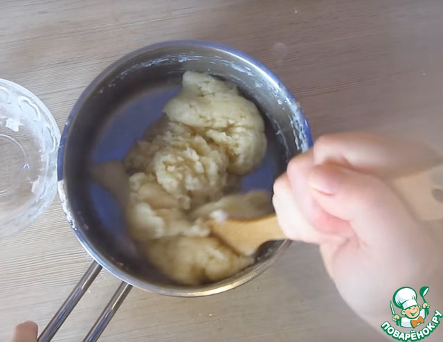 Когда тесто остынет настолько что можно дотронуться не обжигаясь, можно добавить яйца по одному, взбивая деревянной ложкой.