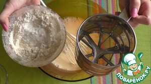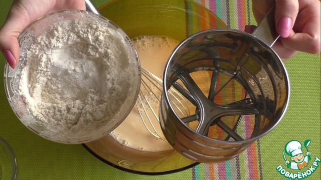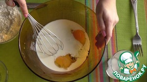 2. Смешайте все сыпучие ингредиенты между собой и добавьте их в молочно-яичную смесь.