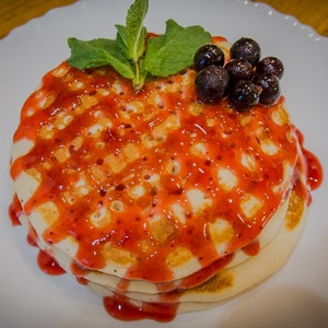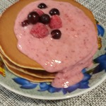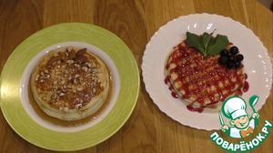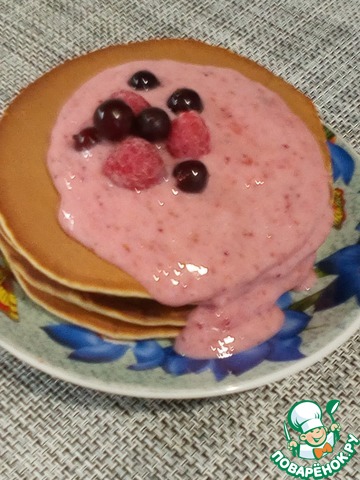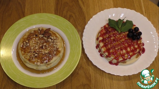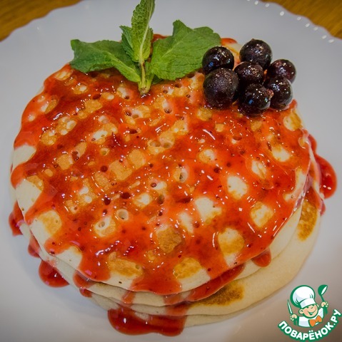 5. Готовые панкейки порционно выложите горочкой и сверху полейте их любым любимым сиропом, медом или вареньем.