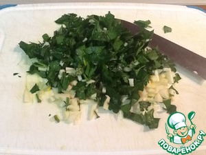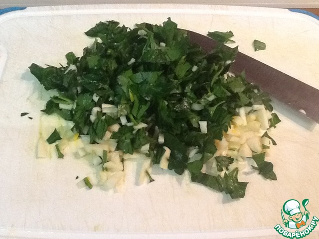 • Петрушку и чеснок порубить.