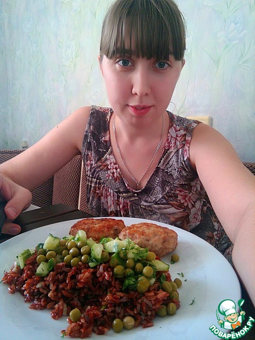 Легкий и простой рецепт, который готовится достаточно быстро. Рис прекрасно сочетается с заправкой и легким овощным салатом. Котлеты с начинкой прекрасно дополняют блюдо. Без котлет это блюдо можно приготовить в пост, будет очень вкусно.