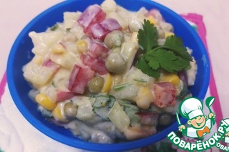 Для заправки: смешать соевый соус, сок лимона и масло. При необходимости добавить соль, молотый перец. Заправить салат и аккуратно перемешать.