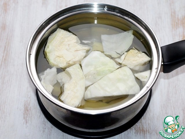 2. В кипящую не соленую воду кладем картофель и белокочанную капусту, отвариваем до полуготовности.