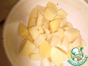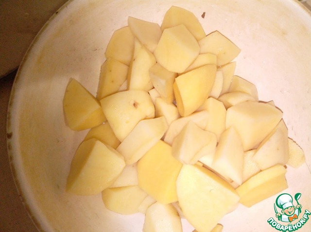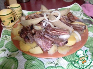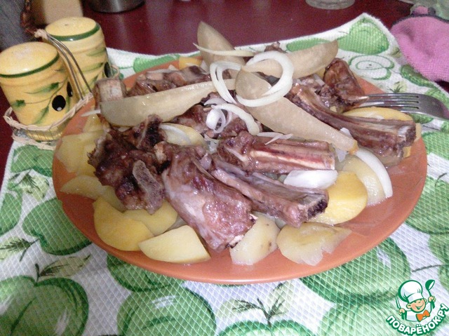 Я готовила картошку с рёбрами. Украшайте чем желаете. В моём случае это лук и огурец.