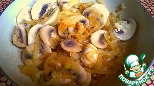 Лук нарезать полукольцами, грибы - тонкими ломтиками и обжарить на оставшемся масле на среднем огне в течение 7-10 мин.