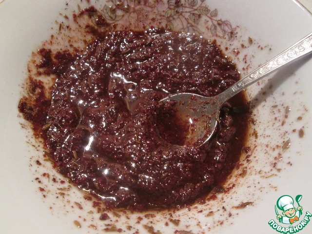 В небольшой мисочке смешайте аджику, корицу, имбирь и зиру. Добавьте три столовых ложки растительного масла, все перемешайте. Для меня эта паста оказалась слишком острой, я люблю легкую пикантность, поэтому корректируйте количество аджики.